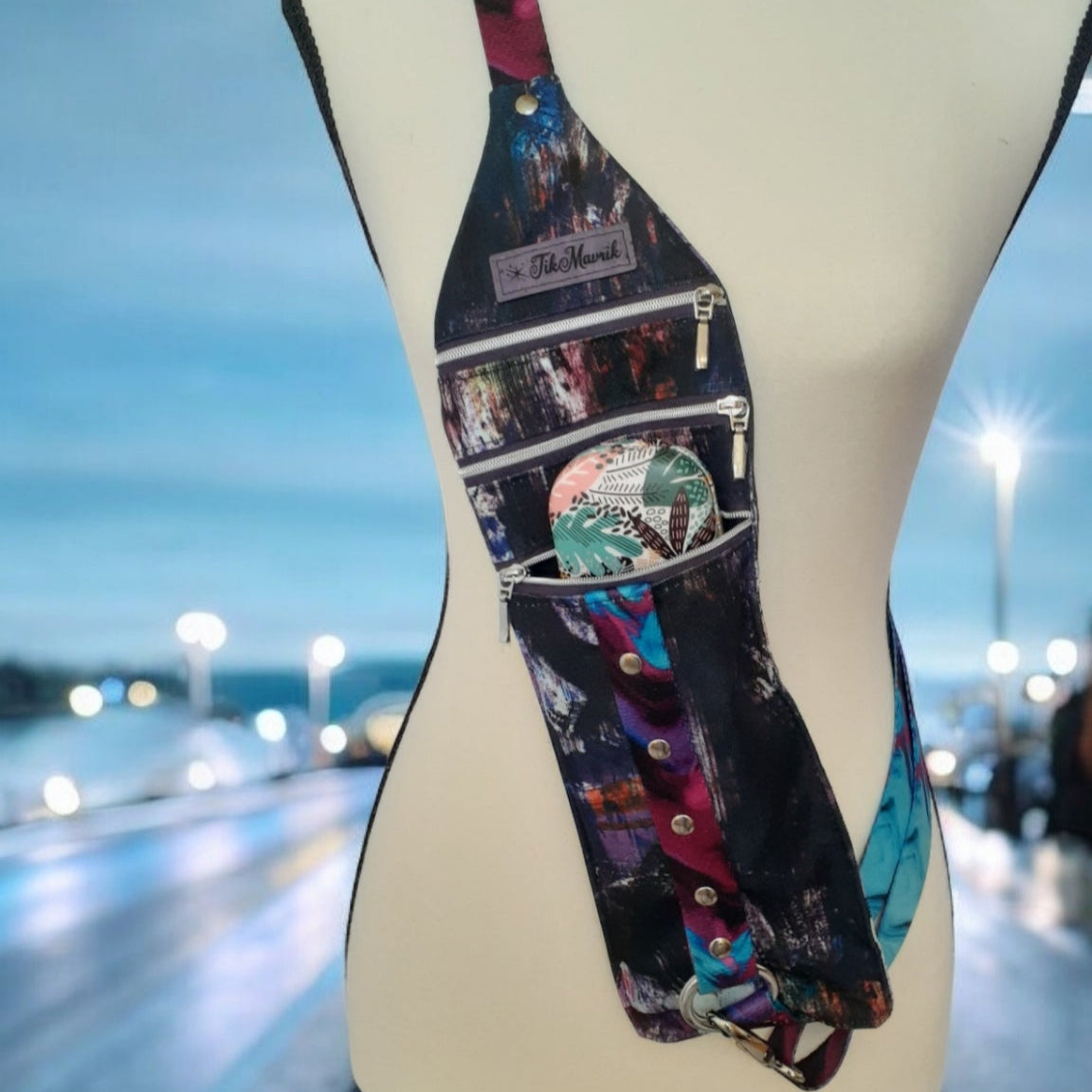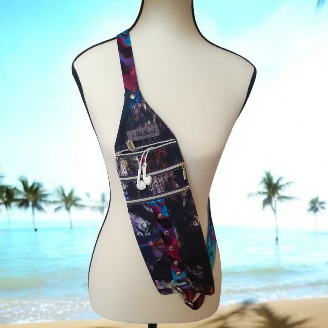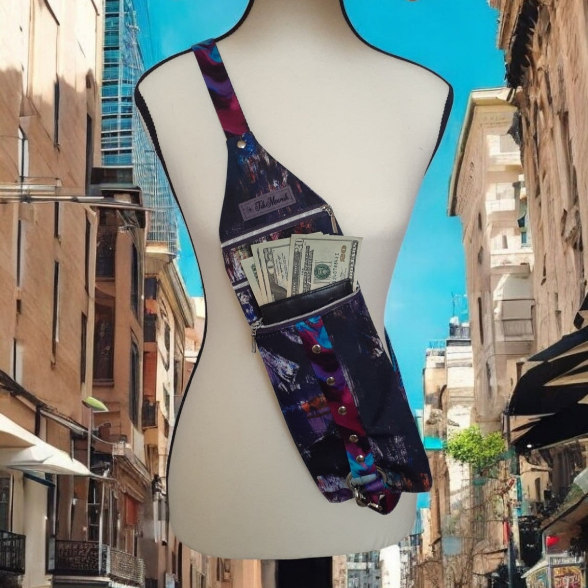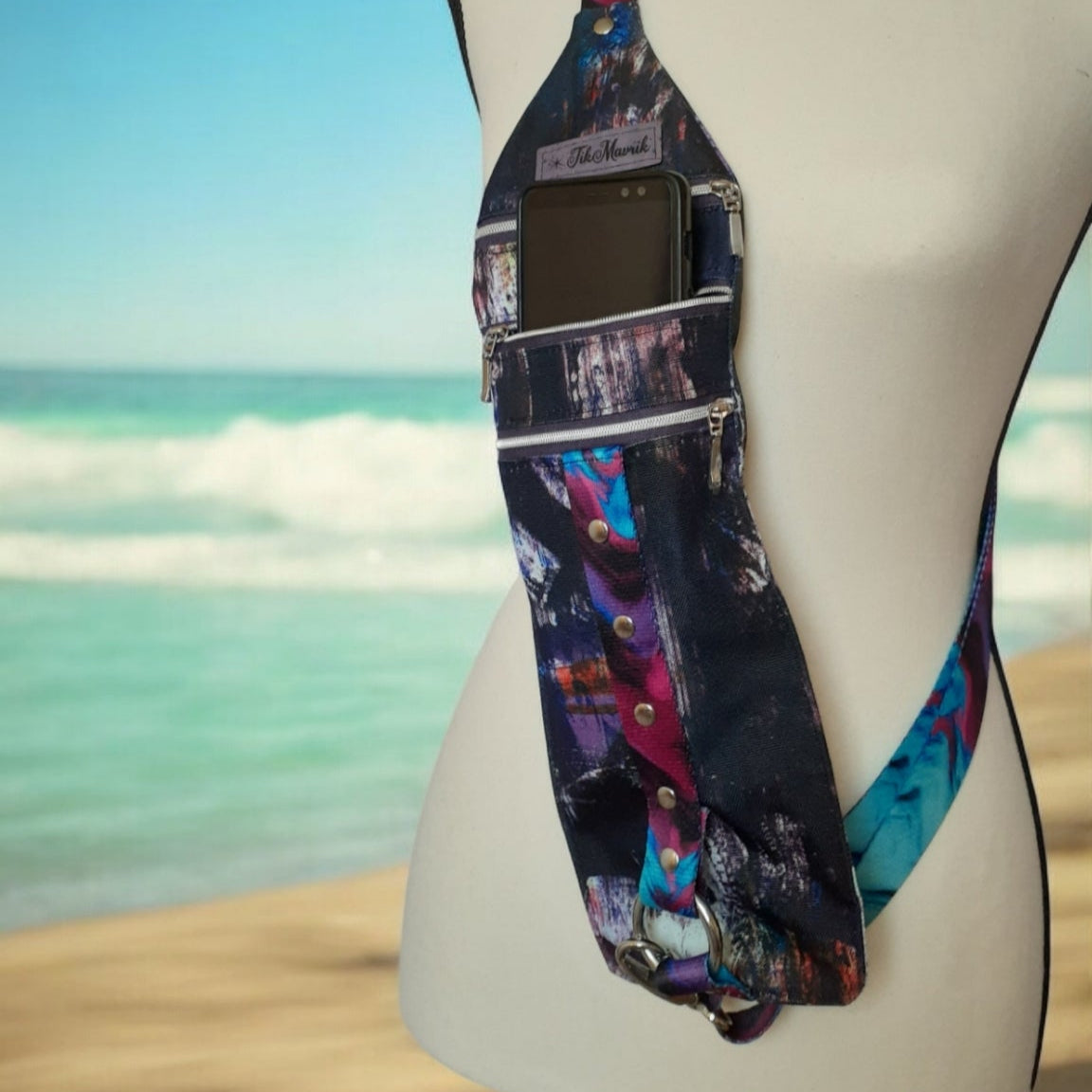 The Slim Bag to wear close to the body and carries just a few essentials such as phone, small wallet, glasses, passports, etc. The bag fits easily under a coat, keeping things safe, out of sight, and easy to access.