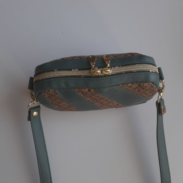 A small bag that can be worn as a crossbody or as a shoulder bag. Inside compartment is big enough to hold the most of basic necessities, such as phone, wallet, keys, etc. A double zipper closure will keep your necessities fully secure.