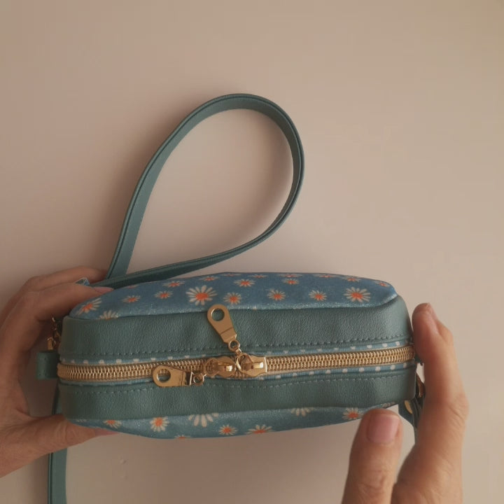A small bag that can be worn as a crossbody or as a shoulder bag. Inside compartment is big enough to hold the most of basic necessities, such as phone, wallet, keys, etc. A double zipper closure will keep your necessities fully secure.