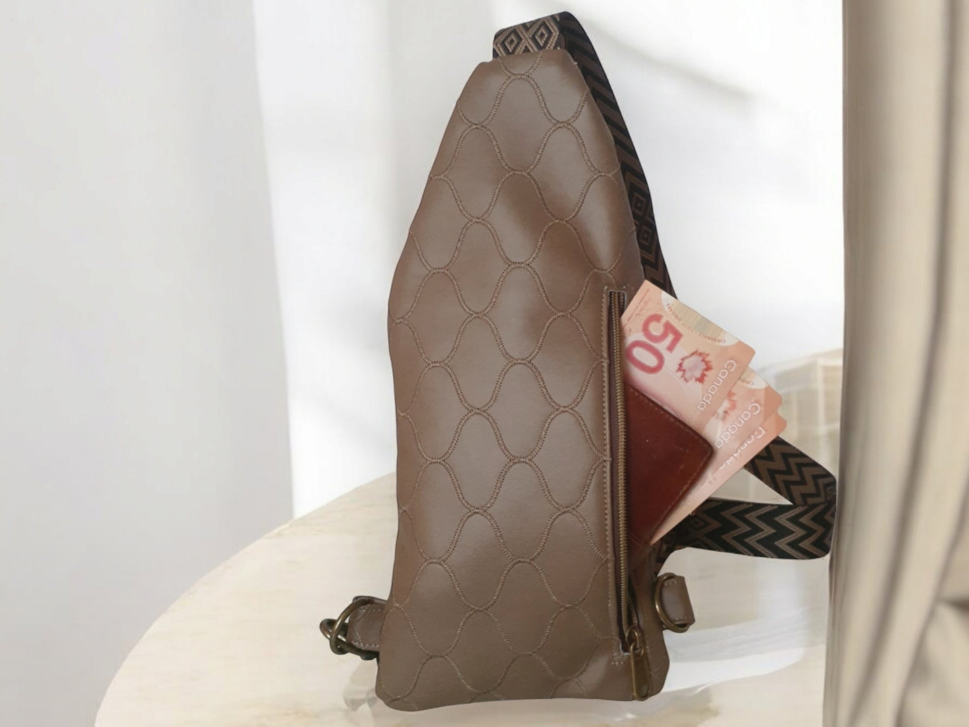 A perfect bag for any travel or everyday use. Back zipper pocket is a great place for a ID or wallet. On the top a little D-ring to clip on something like a badge or a couple of keys that you need for a quick access to. Front zipper pocket will keep passports or any other documents safe. A pocket with snap closure is big enough to hold other essentials like cellphone, glasses, etc. Adjustable 1 1/2" strap with possibility of right or left-handed users.